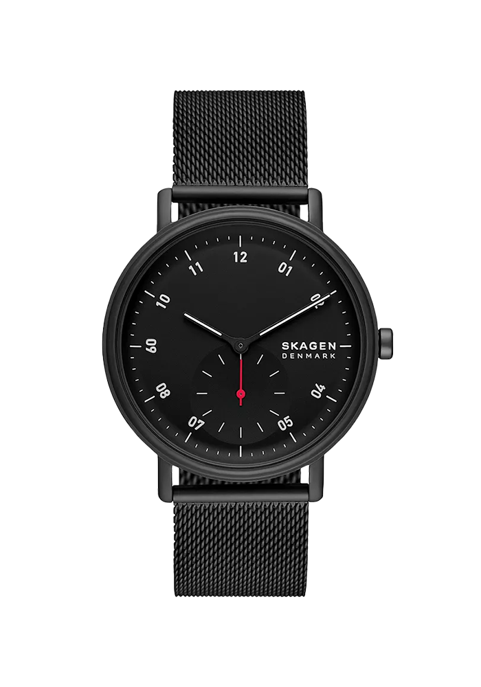 Startseite » Uhren » Skagen » Kuppel Herrenuhr Kleine Sekunde Milanaise Edelstahl schwarz